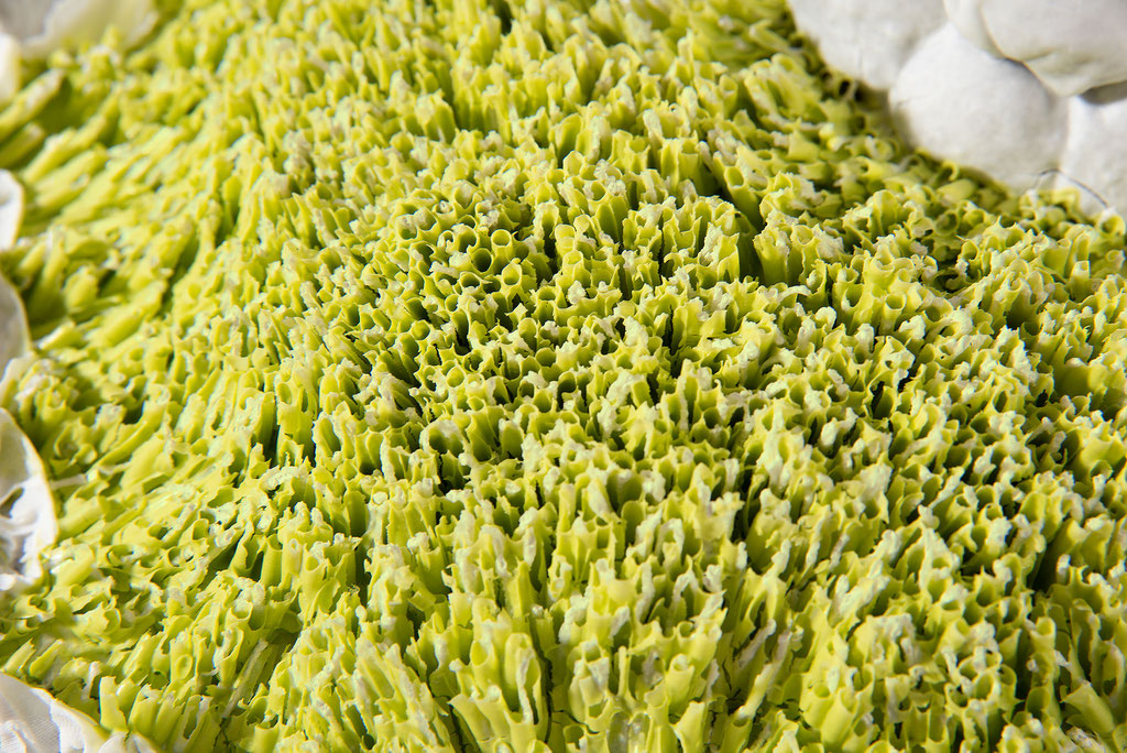 I denne gruppe af værker symboliserer materialet porcelæn på bedste vis koralernes verden, fordi det altid har været et værdifuldt og ædelt materiale, der samtidig er meget følsomt og skrøbeligt. Jeg gør brug af disse kvaliteter, når jeg skaber delikate og sensuelle objekter af koral, som tager beskueren med ind i koralernes lige så delikate og følsomme verden.